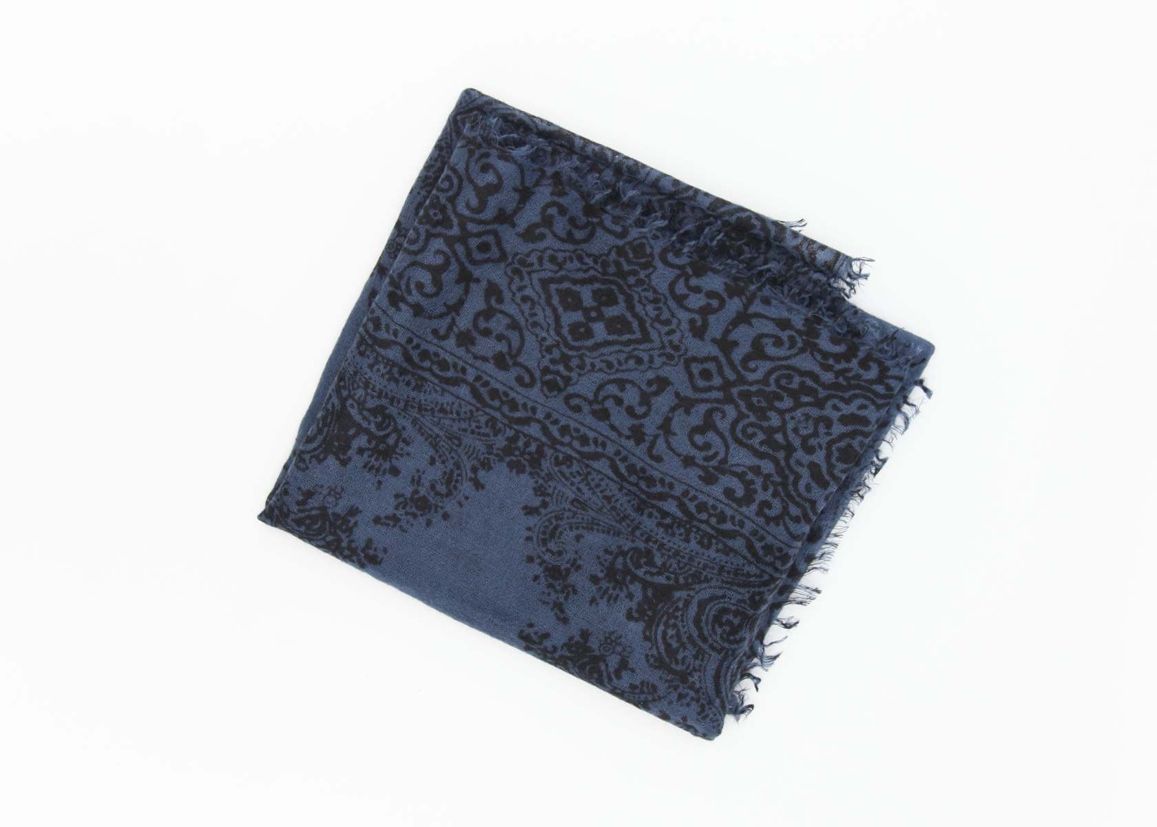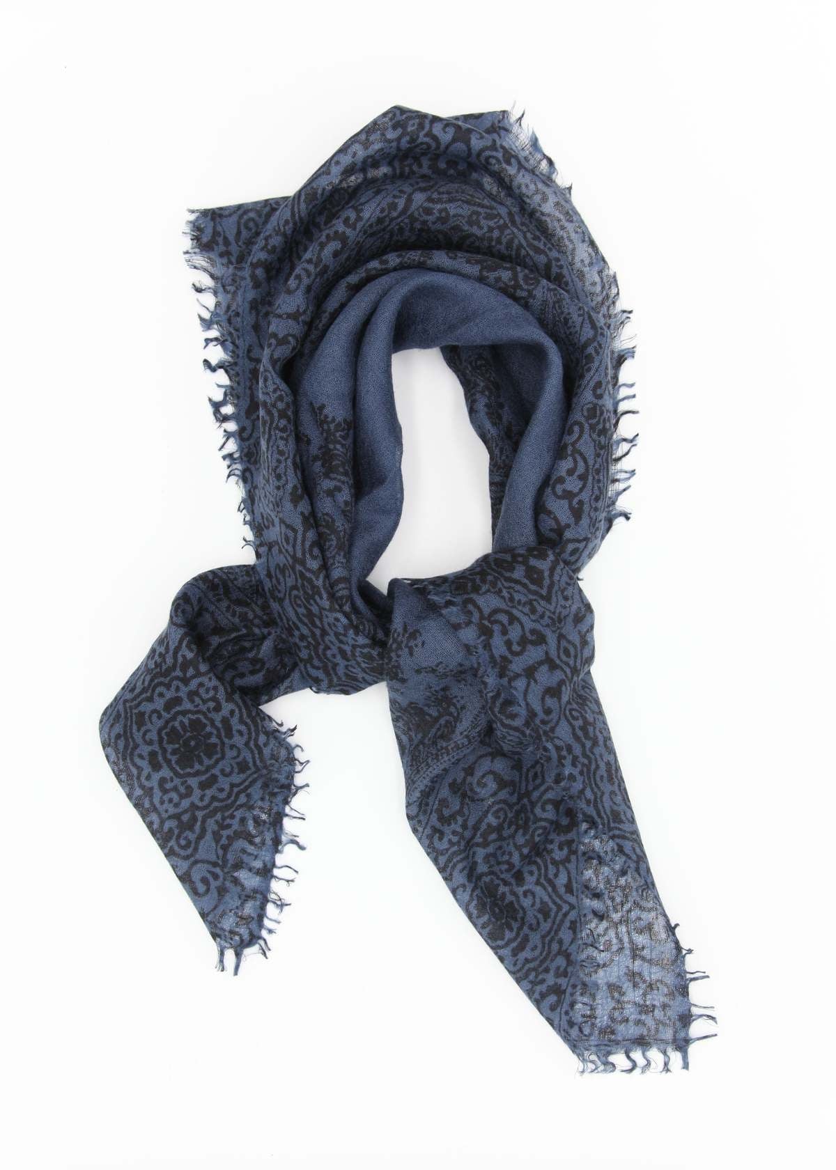 Chan Luu Cashmere Silk Scarf Black Blue Mustard Floral