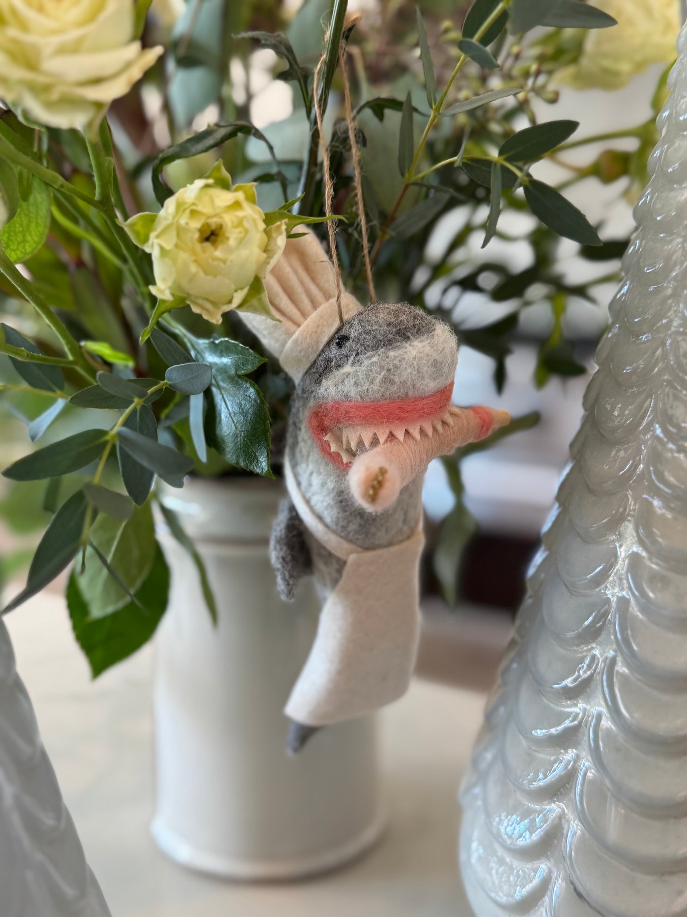 Take a bite out of the holidays with this tongue in cheek (or leg in mouth) shark ornament! The foot at the end of the leg even has a lovely manicure!