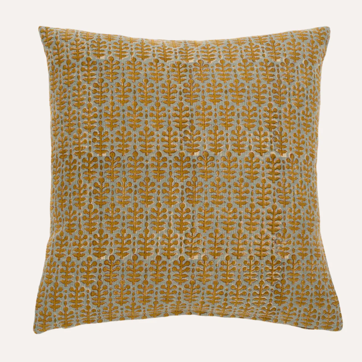 18" x 18" Noor Sage Block Printed Linen Pillow