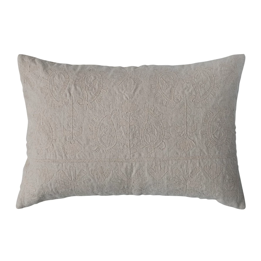 24" x 16" Cotton Lumbar Pillow w/Embroidered Paisley Pattern